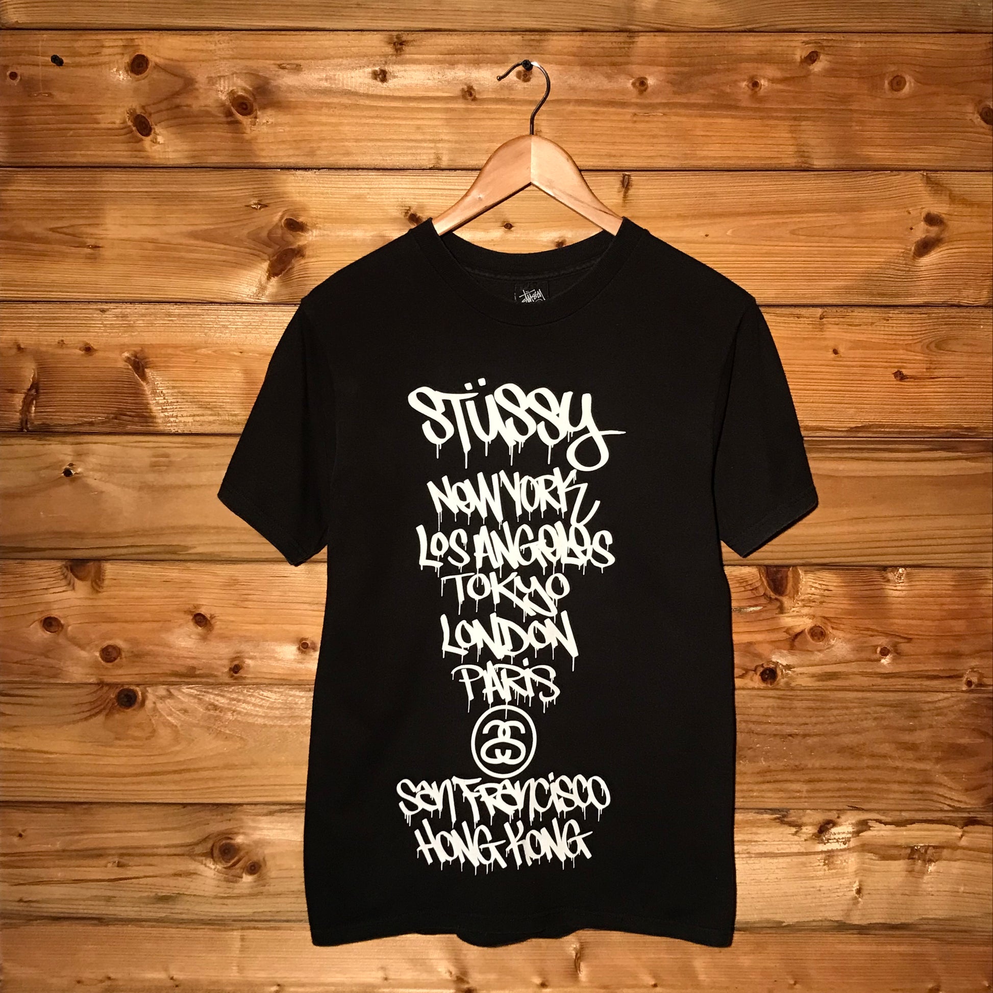 2006 2000s 00s Black Stussy x Dr. Doctor Revolt WT World Tour Artist Series Spellout S/S Short Sleeve T Shirt Tee with White Logo Graphics on front and back