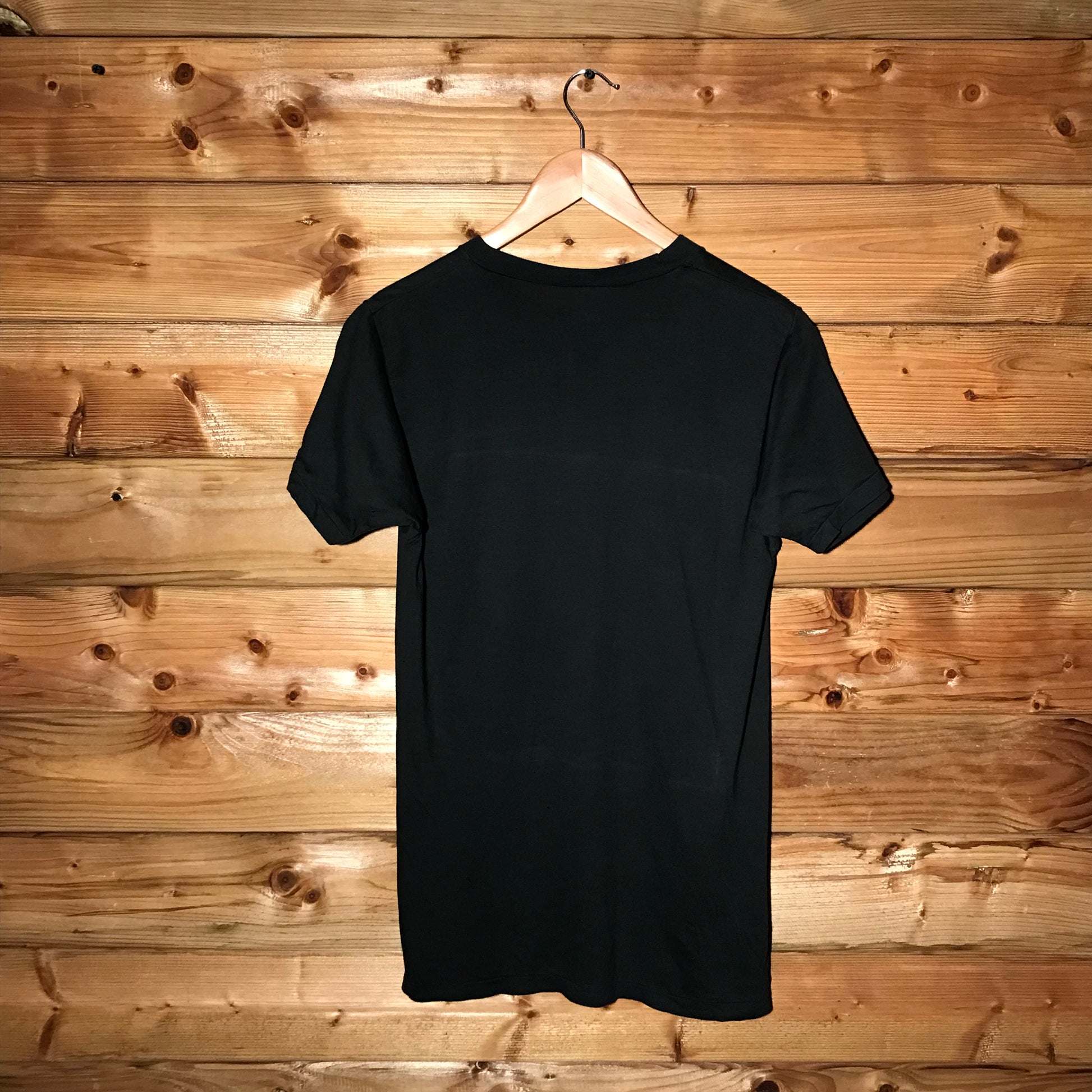 1990s 90s Black Unbranded Zodiac Mindwarp And The Love Reaction Eagle Centre Spellout Crest Concert Tour Band Music Single Stitch T Shirt Tee with Red and Silver Grey Logo Graphics on front