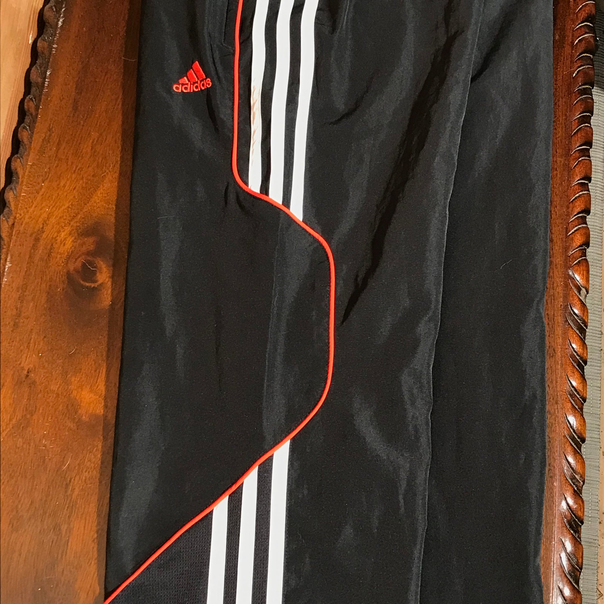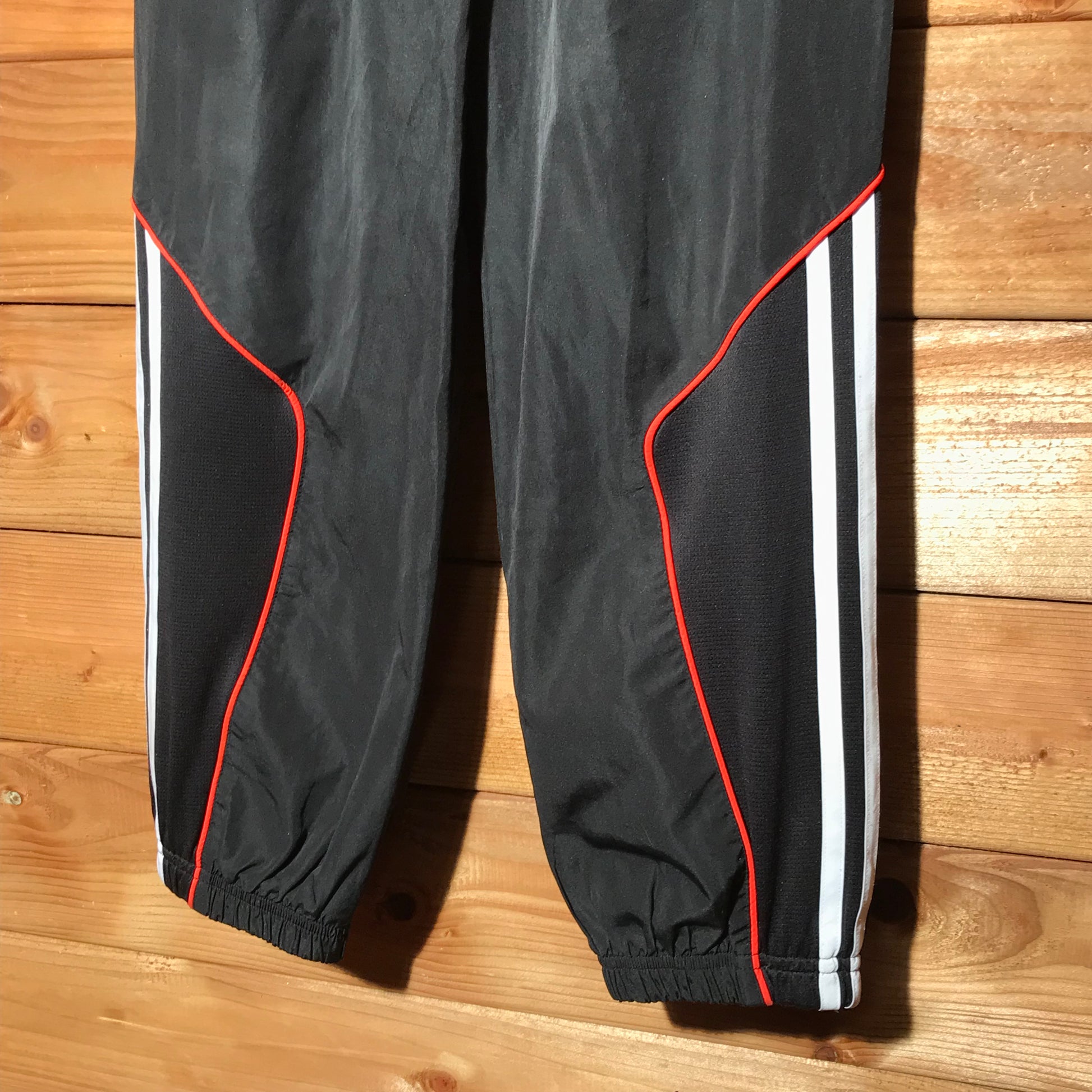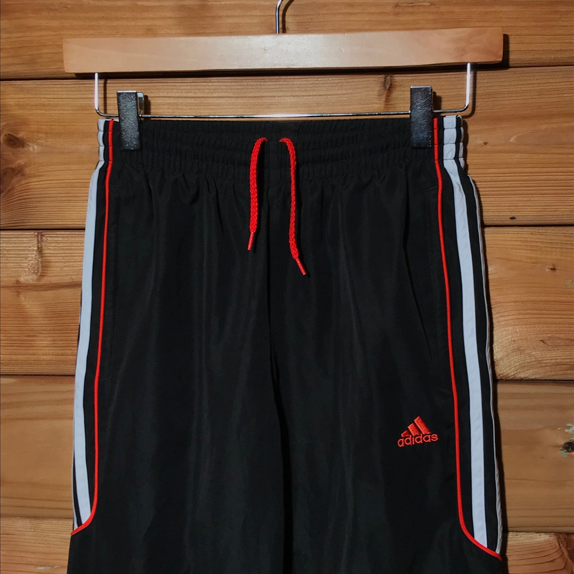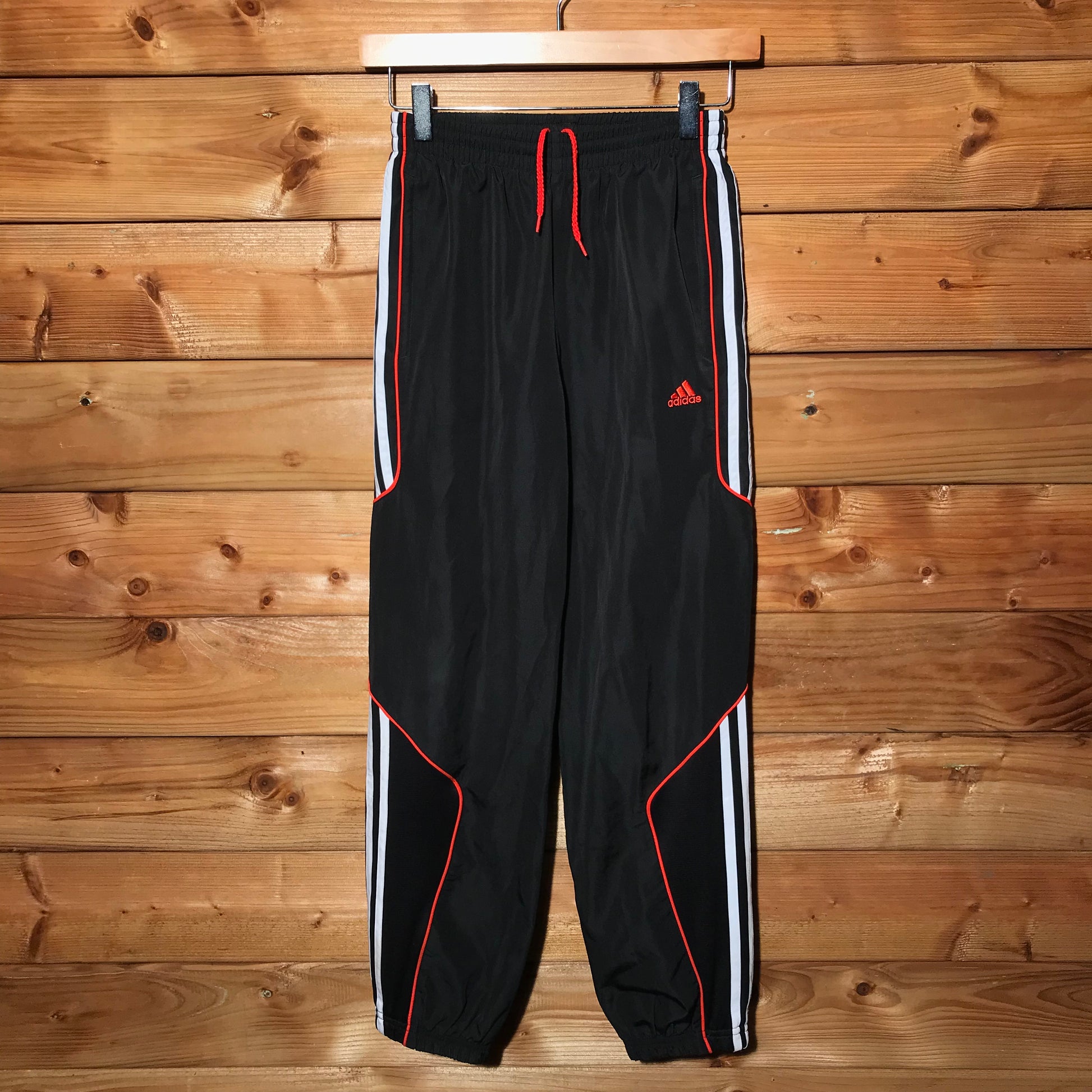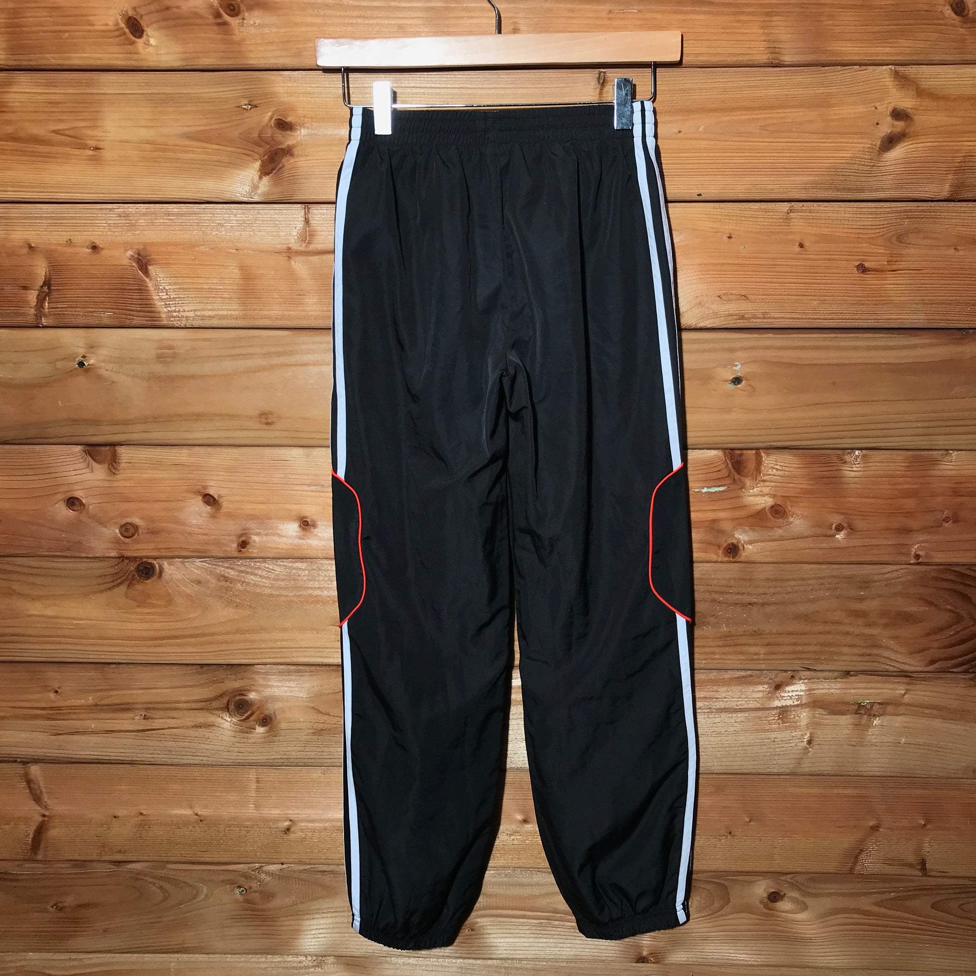 Black Adidas Striped Piping tracksuit pants with Orange Logo Embroidery on front