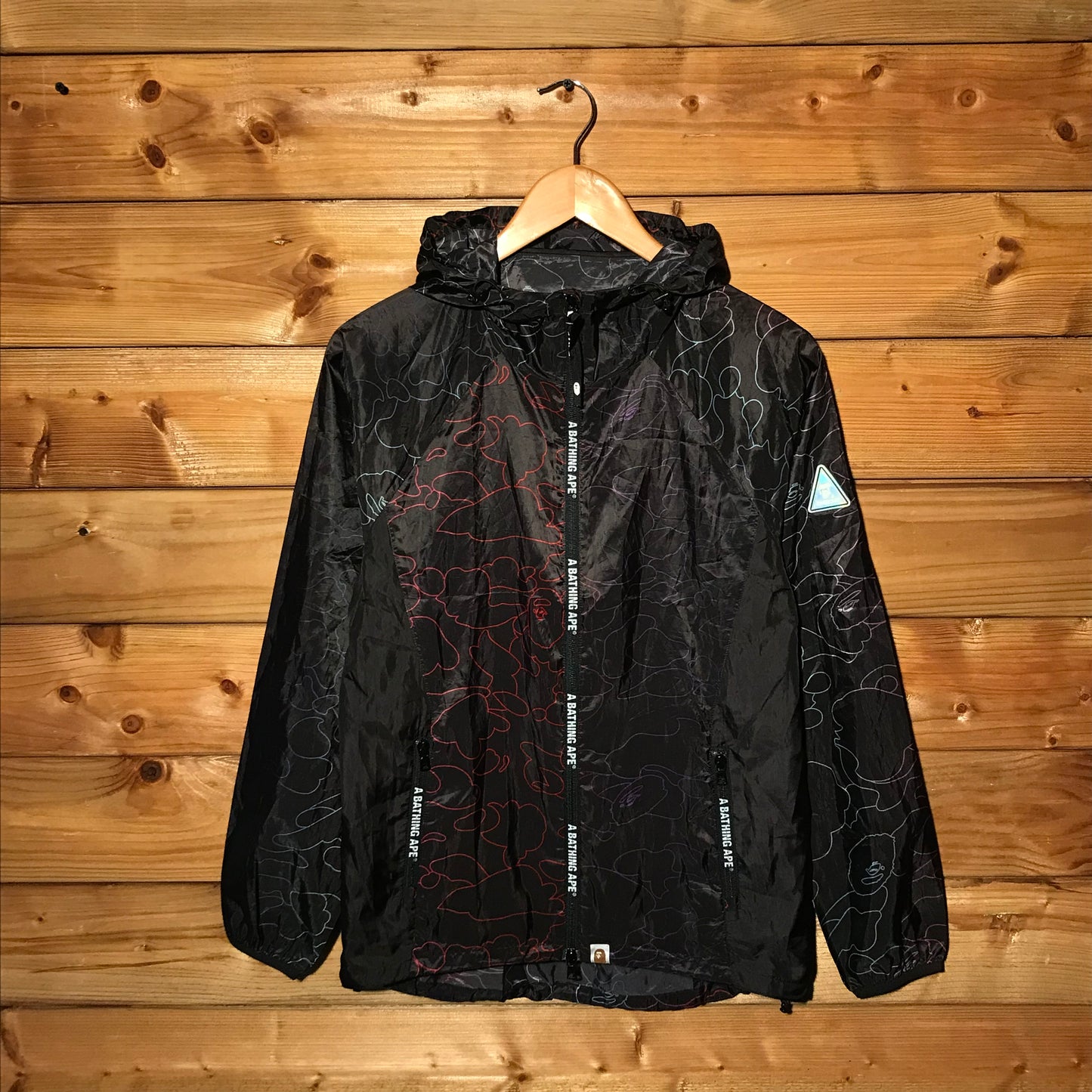 Black Bape by A Bathing Ape Neon Pencil Outline Camo Camouflage All Over Print AOP Full Zip Up Lightweight Light Weight Windbreaker Jacket Coat with Red and Blue Logo Graphics on front and back