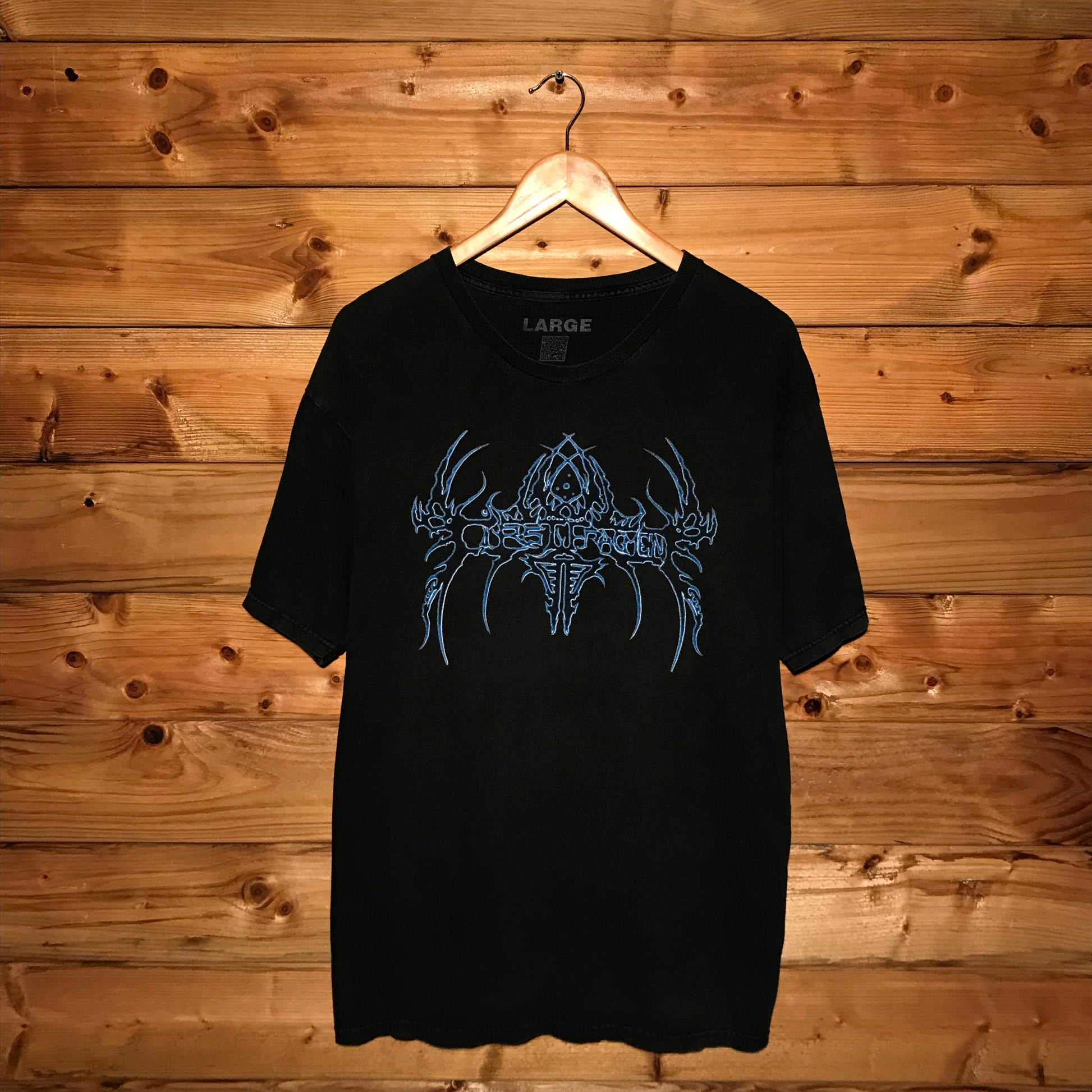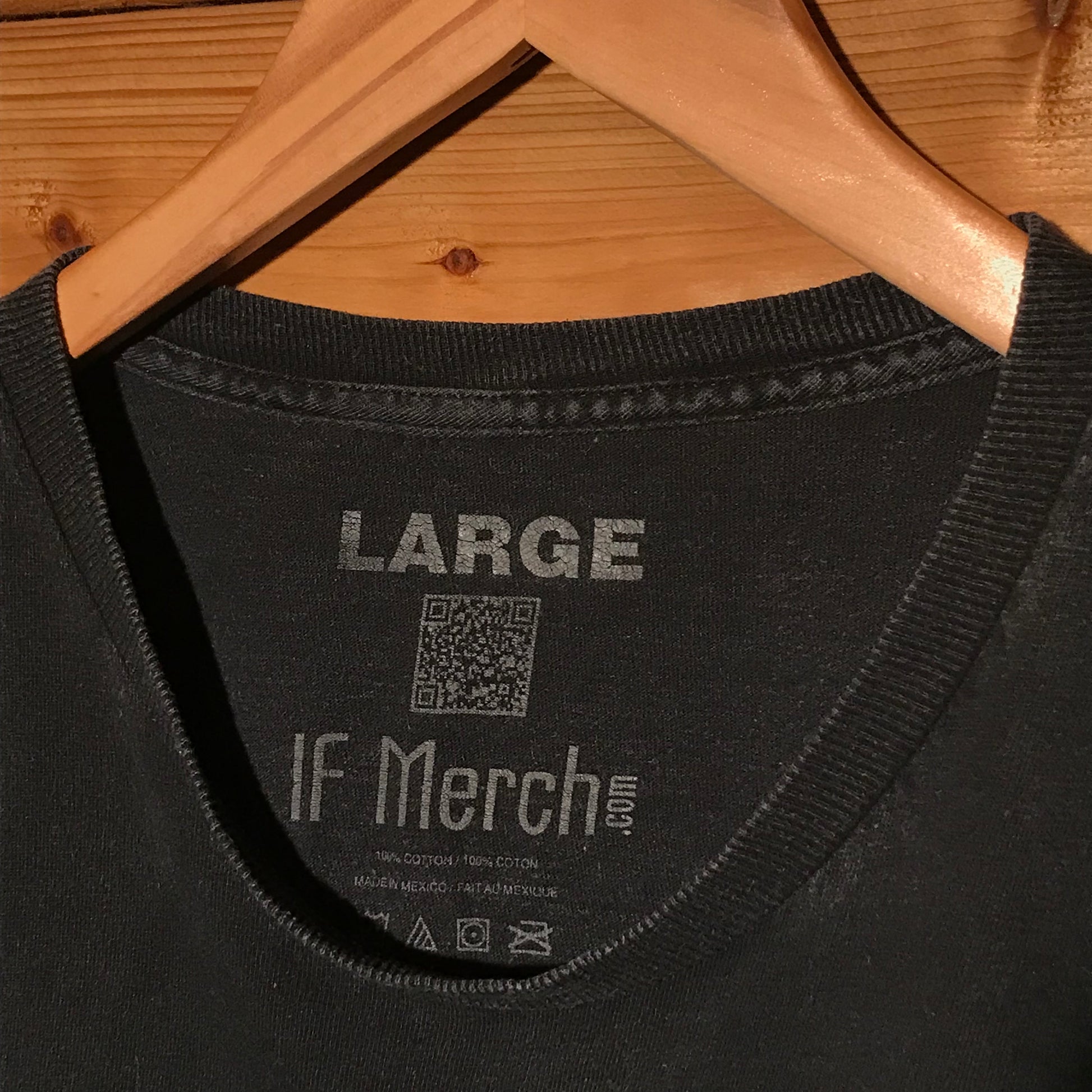 Black If Merch Tag First Fragment The Afterthough Ecstasy Album Art Artwork Centre Spellout Promo Band Music Pullover S/S Short Sleeve T Shirt Tee with White and Blue Logo Graphics on Front