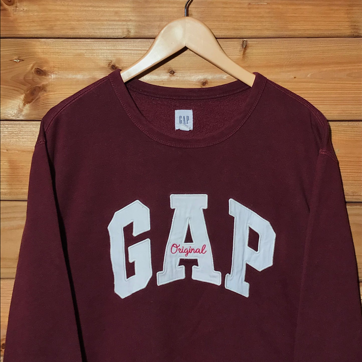 Burgundy Red GAP Arc Spellout Crewneck Sweatshirt with White Logo Embroidery on front