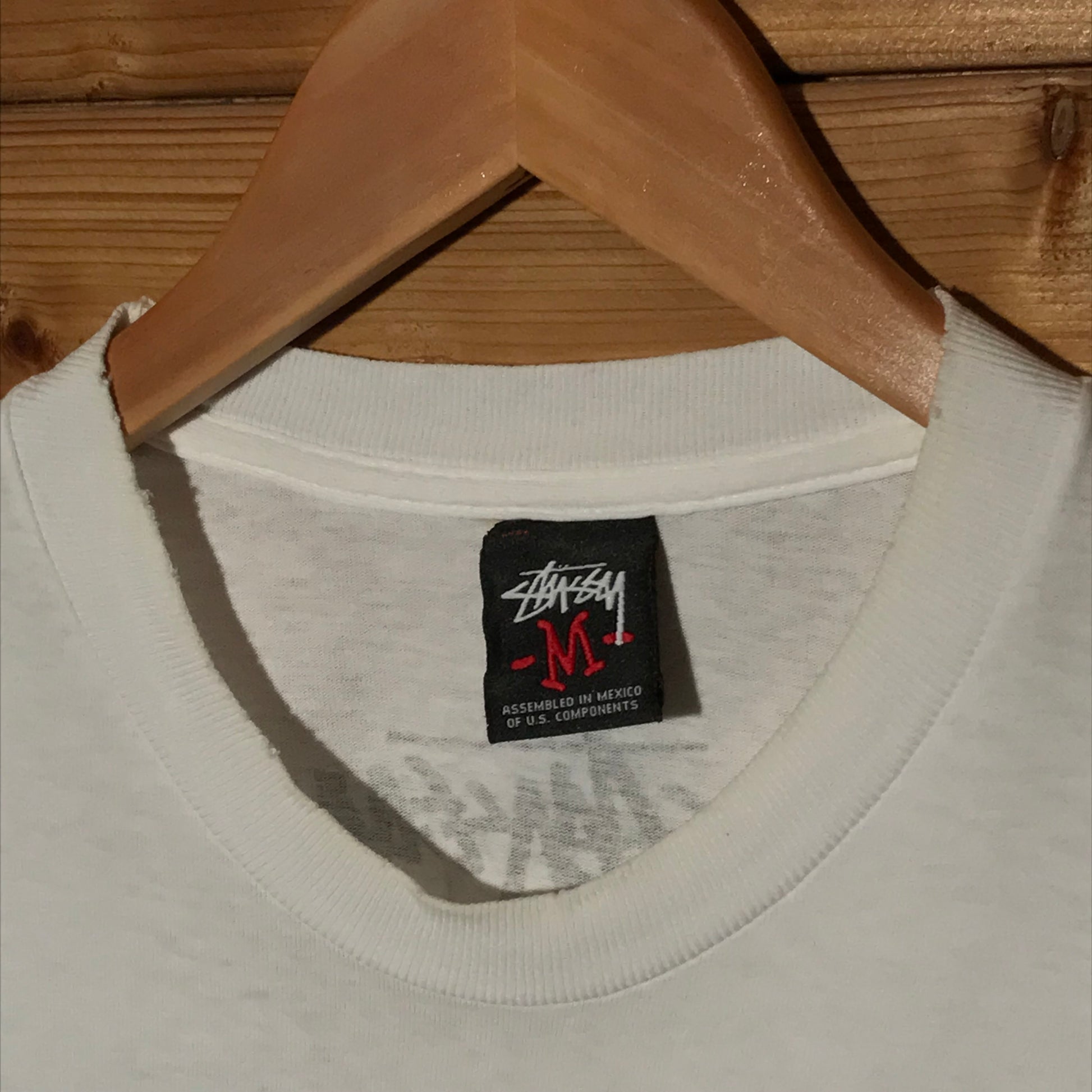 2000s 00s White Stussy Tokyo Japan Chapter Store Speech Bubbles Centre Spellout S/S Short Sleeve T Shirt Tee with Multi Multicolour Yellow, Blue, Pink and Black Logo Graphics on front and back