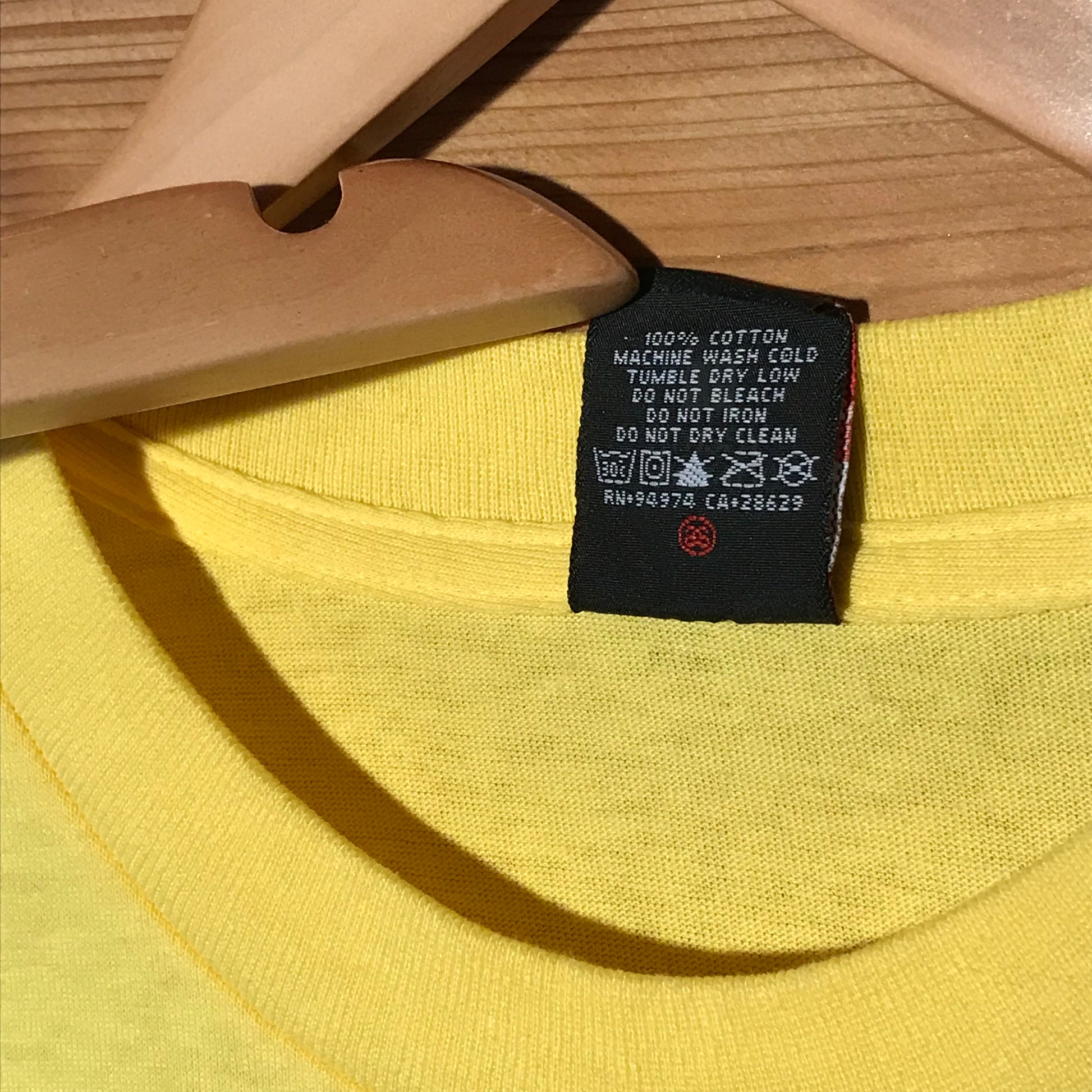 2010 2010s 10s Yellow Stussy x Tower Records x ZOZOTOWN ZOZORESORT 30th Year Anniversary Collection Face The Music No Music No Life Script Spellout T Shirt Tee with Black and Red Logo Graphics on front and back