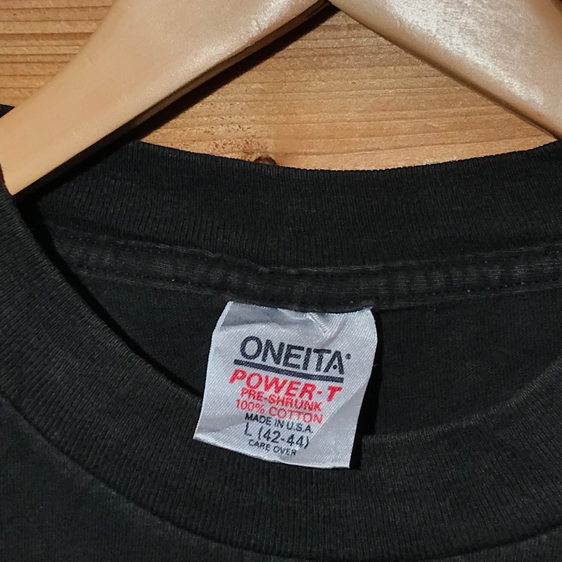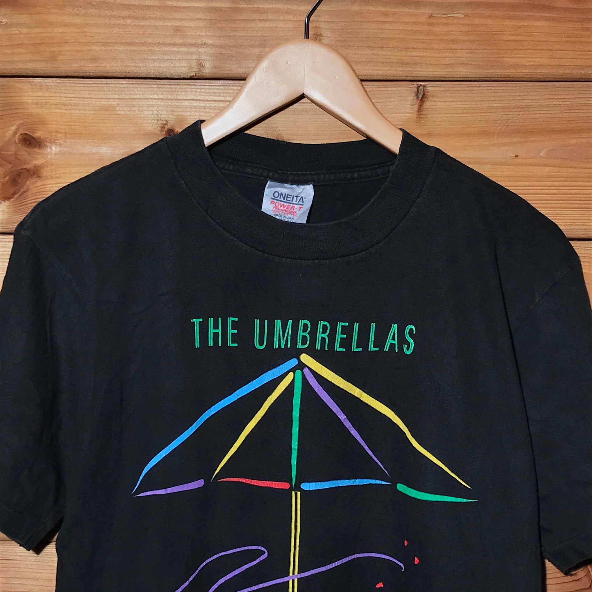 1991 Black Oneita The Umbrellas Christo and Jeanne-Claude Tejon Pass USA t shirt with Multicolour Logo Graphics on front